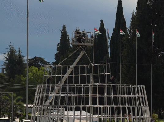 На площади Свободы в Сухуме началась установка каркаса главной новогодней ёлки. На монтаж конструкций уйдёт около десяти дней, после чего приступят к